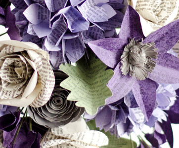 This romantic literary wedding in the UK featured custom book bouquets made from the pages of Jane Austen and A.A. Milne novels, perfectly paired with a soft purple wedding palette. Floral arrangements combined blooms like clematis, hydrangeas, and sweet peas, creating a whimsical, garden-inspired look with vintage charm.